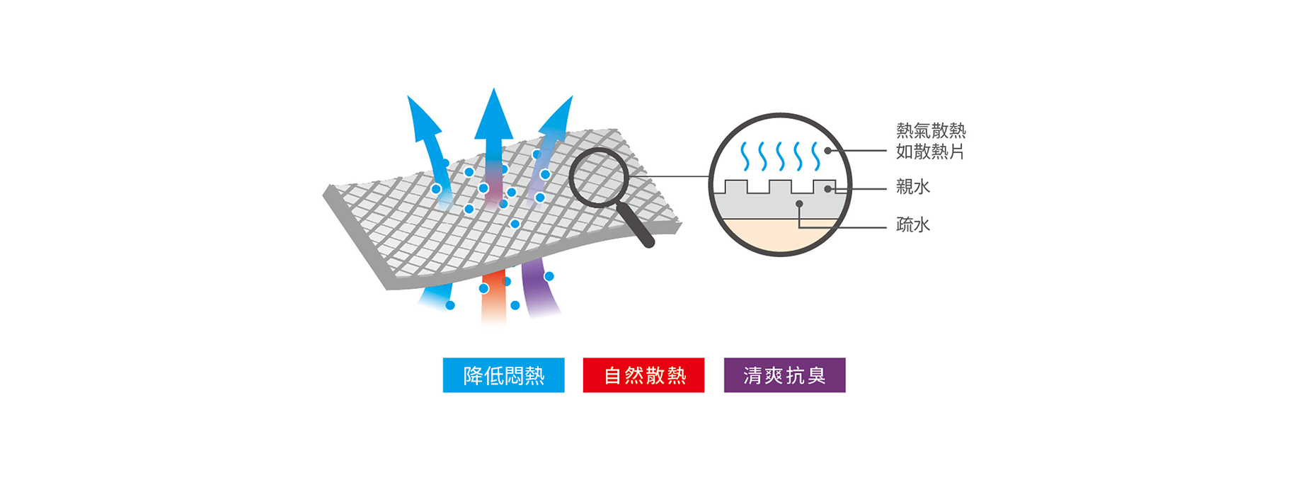 Polartec® Delta™的開發主要是在棉與人造纖維間取得平衡點,使穿著者在運動時不會感到悶熱,進而充分發揮藉由排汗達到降低體溫的自然人體機制。Polartec® Delta™布料在疏水性的布料上建構網狀的親水性立體結構,可以吸附汗水後並將汗水平均分散在布料上,達到散熱的效果。加上親水性立體網狀結構能使汗水徐徐蒸散,增加身體自然散熱的時間,達到長效降溫的效果。而此其原理與汽車所使用的散熱片是一樣的。再加上這種立體結構可以避免出汗時布料黏貼在皮膚上並保持透氣性,使穿著者不會感到悶熱。最後,Polartec® Delta™具有抗臭的功能,在穿著後仍能夠保持乾爽清新。