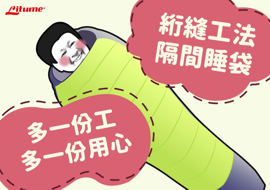 為了改善這個缺點,經過一年多的努力,意都美Litume研發團隊終於研發出『 睡袋絎縫工法隔間 』方法,讓一直以來化纖睡袋車縫跑風的問題終於得以改善!