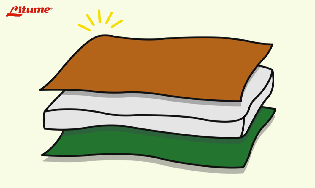一般的化纖睡袋有三層,分別是內裏、填充物、以及最外面的布,而填充物就像夾心餅乾一樣被夾在中間。